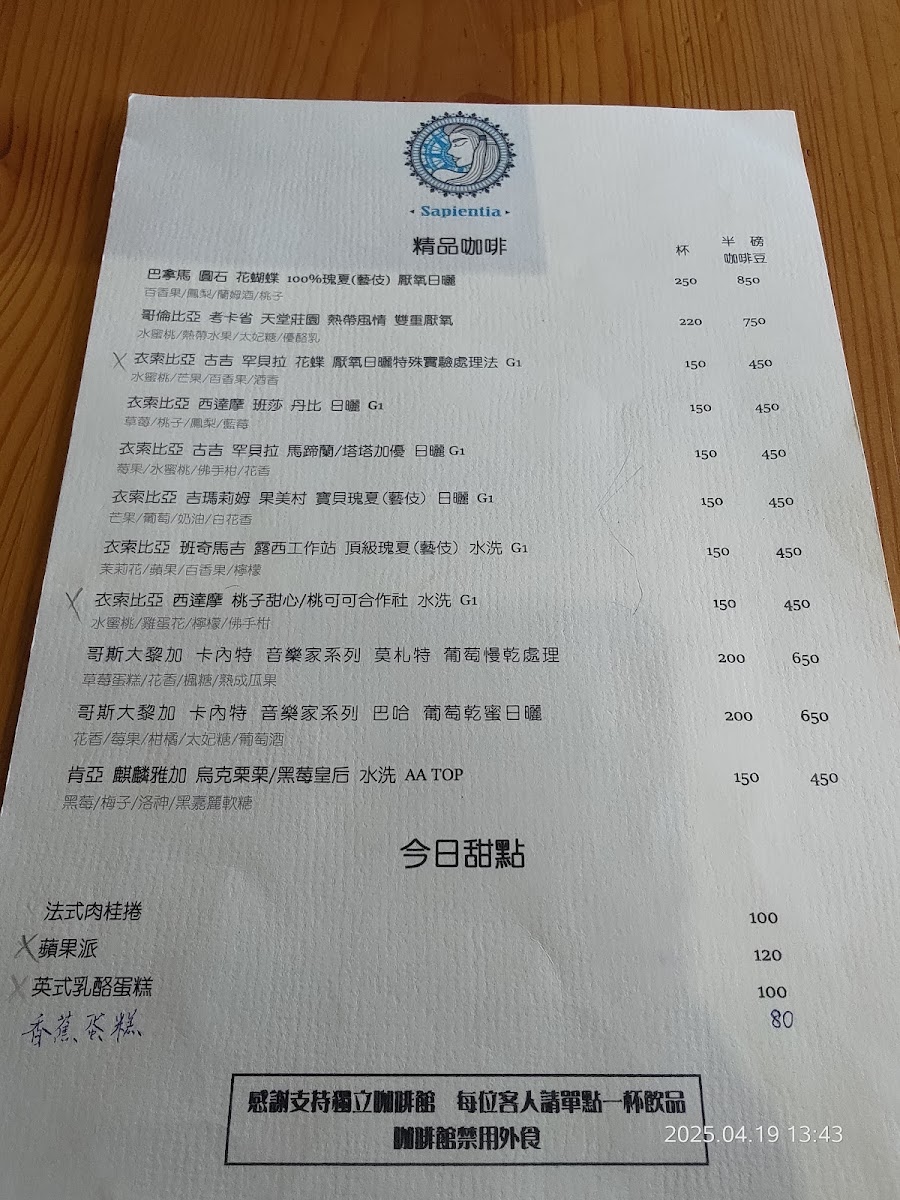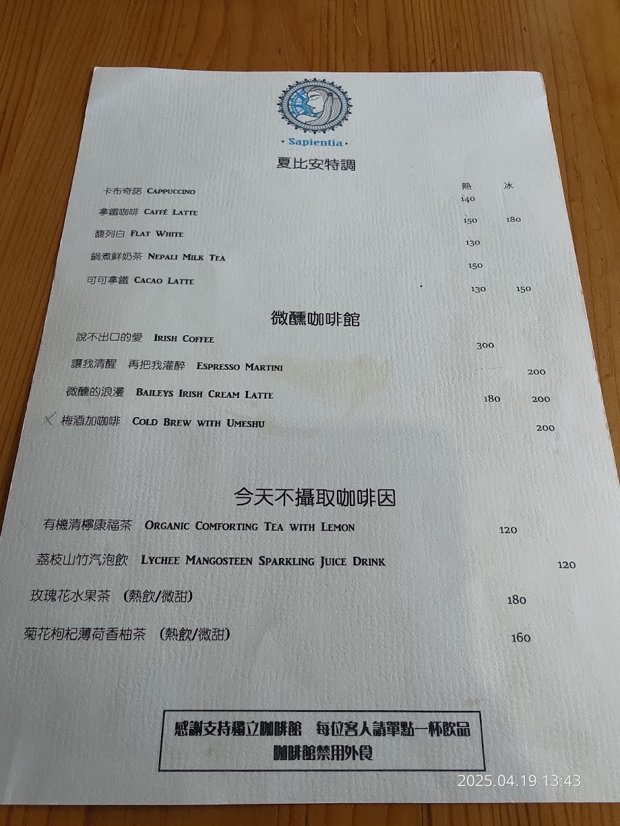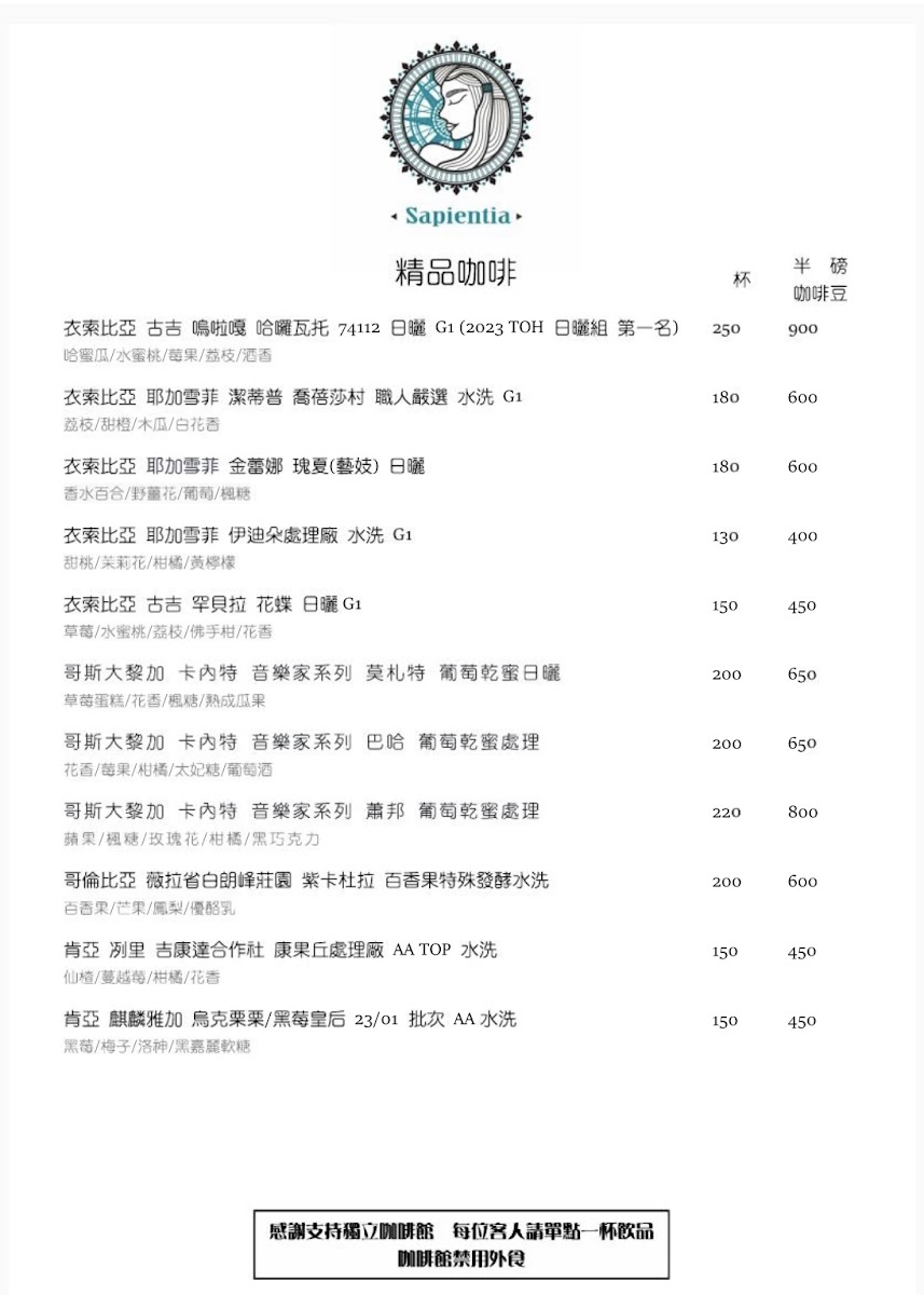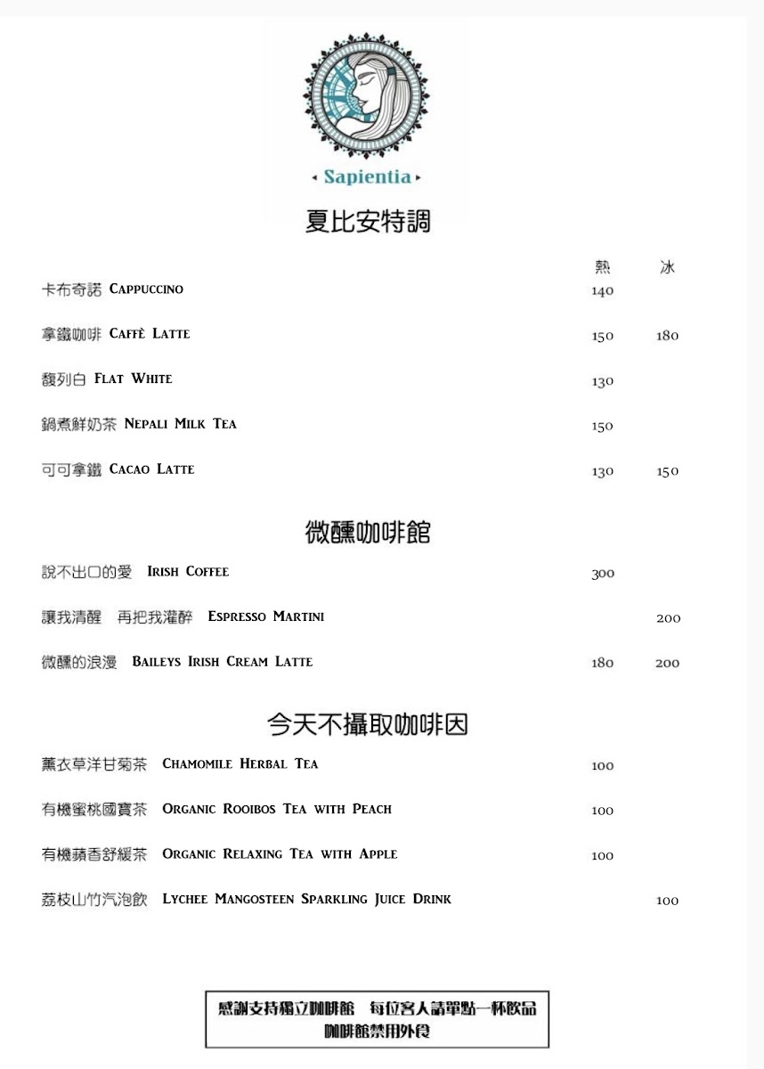 Sapientia Cafe 夏比安咖啡(7/12包場活動不對外營業) Menu